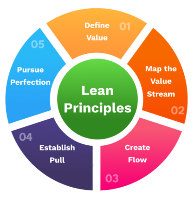 De vijf kernprincipes zoals geformuleerd door Womack en Jones (1996) betreffen: